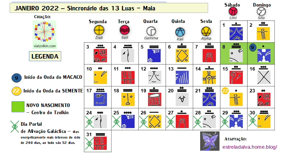 Publicamos 3 calendários de janeiro para você poder consultar facilmente, planejar o seu mês, observar e aprofundar os estudos dos seus mapas: Ocidental, Maia e Lunar.