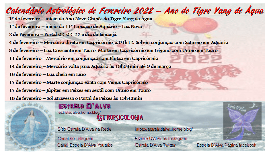 Calendário Lunar de fases e signos – Ano Novo do Tigre/Fevereiro 2022