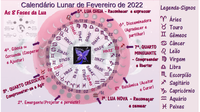 Calendário Astrológico - Fevereiro de 2022 Calendário Cósmico Maia - Fevereiro 2022 Calendário Lunar e das Fases da Lua - Fevereiro de 2022 Feliz Ano Novo de 2022! Publicações em destaque e relevantes para o ano de 2022: Calendário Lunar de fases e signos – Ano Novo do Tigre/Fevereiro 2022 A IMPORTÂNCIA DOS CICLOS LUNARES E … Continue lendo 3 Calendários Astrológicos – FEVEREIRO de 2022